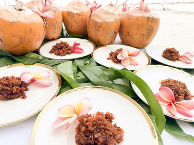 Zum Dessert wurde ein traditioneller Kokosnuss-Nougat serviert – eine typische süße Spezialität der Seychellen, die den perfekten Abschluss für diesen besonderen Tag bildete.