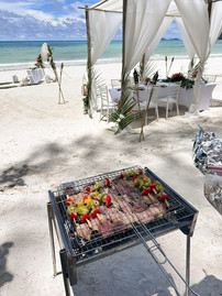 Am Abend wurde der Hochzeitstag mit einem stilvollen Dinner am Strand bei Sonnenuntergang fortgesetzt. Die Gäste wurden mit einer Auswahl traditioneller kreolischer Spezialitäten verwöhnt – frisch zubereitet und voller tropischer Aromen.